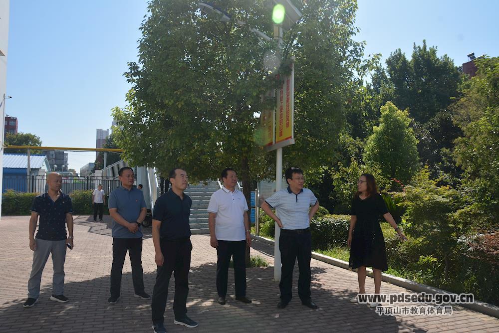 检查组领导在景艳伟校长、付书豪、宋建领、李学功副校长的陪同下,全面检查市四十中的各项开学工作,详细询问假期工作、开学准备、职工到岗、新生报到、疫情防控等等工作的开展情况。