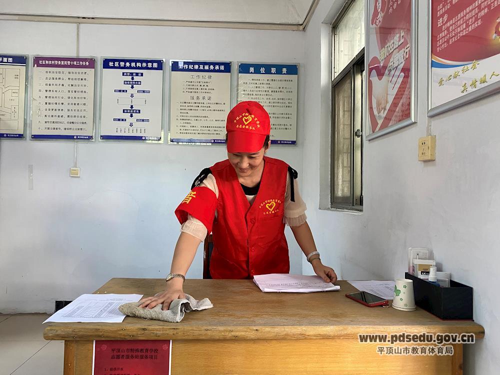 为增强广大教师、群众的安全和文明意识,市特殊教育学校在校园门口增设了志愿者服务站,根据服务需求,特设轮流值日岗,值班教师每天上、下午都在所属范围上岗执勤,引导市民文明安全出行。热情、服务、爱心......身穿志愿红背心、头戴小红帽、佩戴红袖章,党员志愿者们尽职尽责地站岗执勤,默默无闻地打扫着服务站卫生,对需要帮助的人伸出援助之手,耐心地为过往人们提供交通讲解,维持车辆的秩序等,用心做好志愿服务工作。