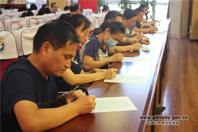 宣誓后,全体教师在《平顶山市第八中学教师师德承诺书》上签字,同时将师德承诺内容在学校公示栏张贴公示,接受学生、家长的监督。