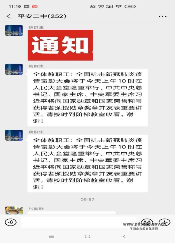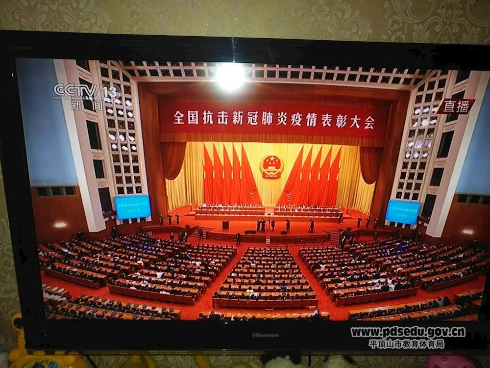 9月8日上午10点钟,平顶山市二中组织全校教职工在阶梯教室观看了全国抗击新冠肺炎疫情表彰大会现场直播。