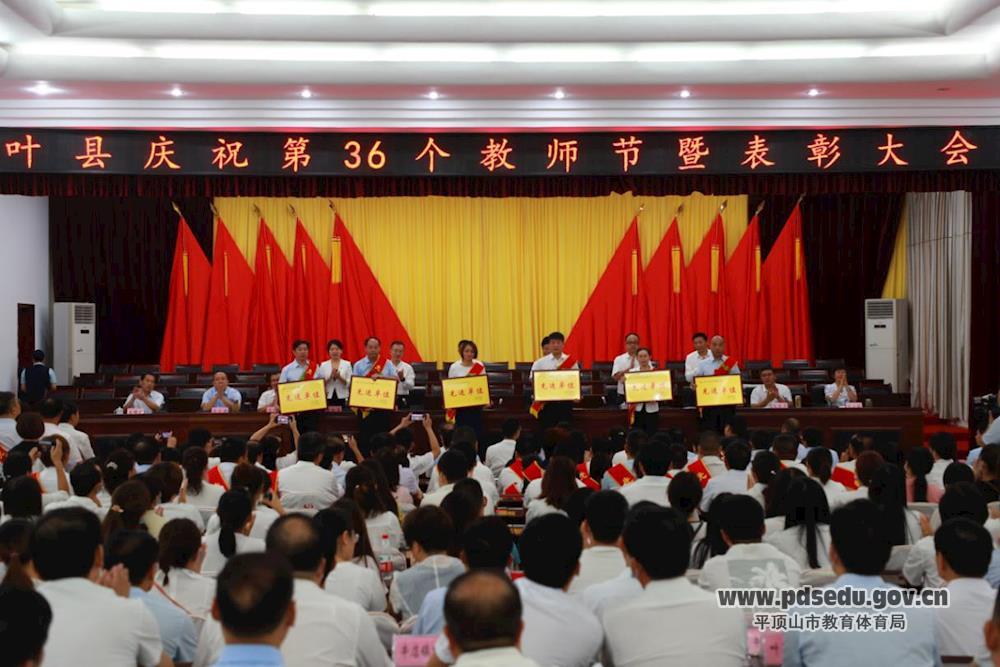 9月8日,叶县庆祝第36个教师节暨表彰大会在该县政府会堂举行。对2019-2020学年教育战线上涌现出来的先进单位和先进个人及尊师重教先进集体和个人进行表彰。