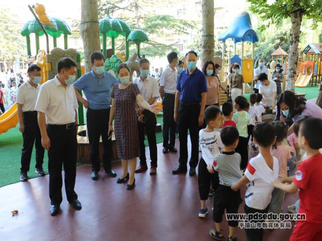 9月8日上午,市人大常委会副主任齐俊禄、市人大教科文卫委员会主任胡献民等领导莅临平顶山市育新幼儿园进行学前教育开展情况调研,市教育体育局副局长尹卫东全程陪同。
