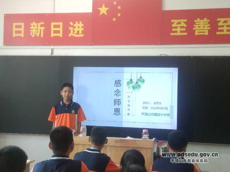 尊师重教,是中华民族的优良传统,为培养全体学生感念师恩之情,在36个教师节到来之际,市四十中开展了“感师恩,念师恩,从你我做起”主题班会活动。