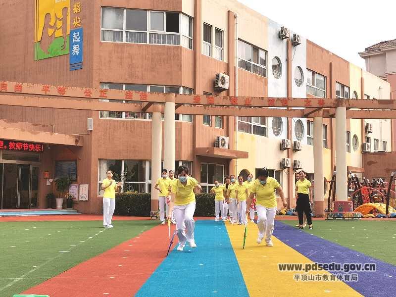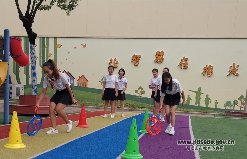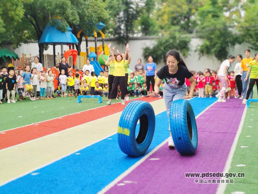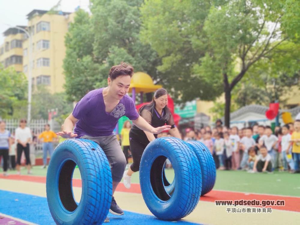 全体师生齐聚幼儿园操场上,在孩子们此起彼伏的加油、呐喊、助威声中,老师们个个争先恐后、激情昂扬地展开了“推环障碍和车轮滚滚接力赛”。整个场面热闹非凡,处处洋溢着团结协作、齐心协力、蓬勃向上、健康快乐的竞技精神。老师们尽情享受着游戏带来的开心与愉悦,整个操场变成了一片欢乐的海洋。