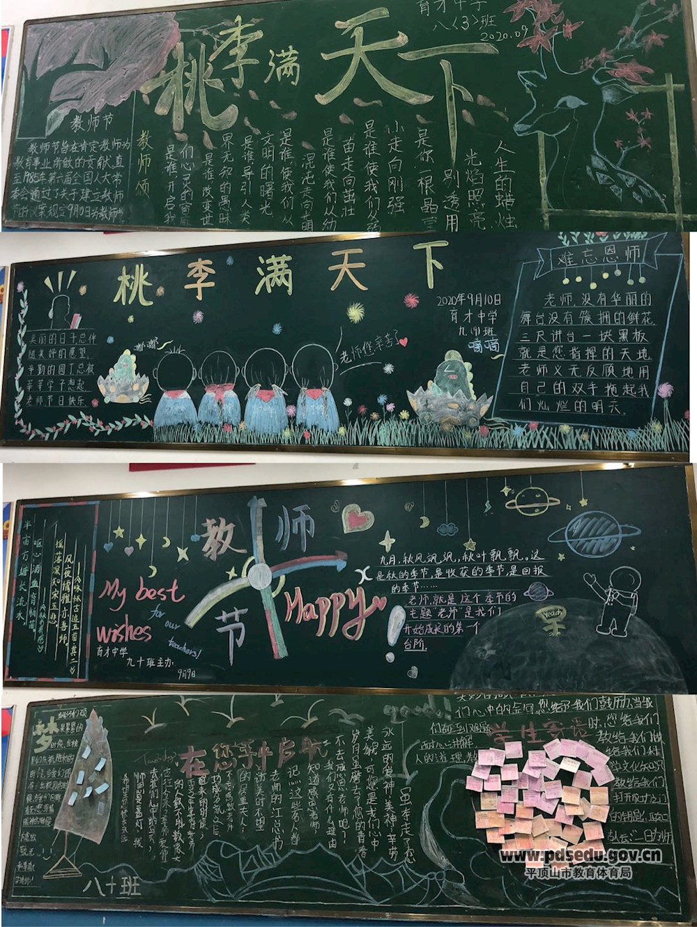 飘香九月,祝福飞扬。在第36个教师节来临之际,市育才中学团委组织开展教师节“感念师恩”主题黑板报系列活动。每个班级都积极踊跃参加,各具特色!9月9日下午,在副校长郭军带领下,给各个班级主题黑板报评分。