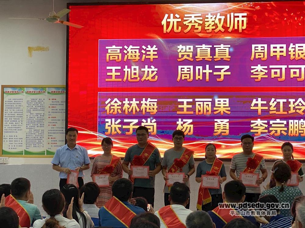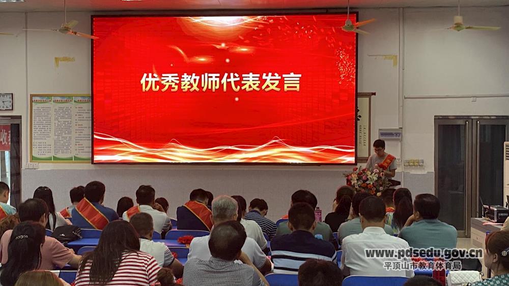 优秀教师周甲银代表全体获奖教师发言,号召全体教师做教书育人的模范,做为人师表的楷模,做爱岗敬业的榜样,做人类灵魂的工程师。