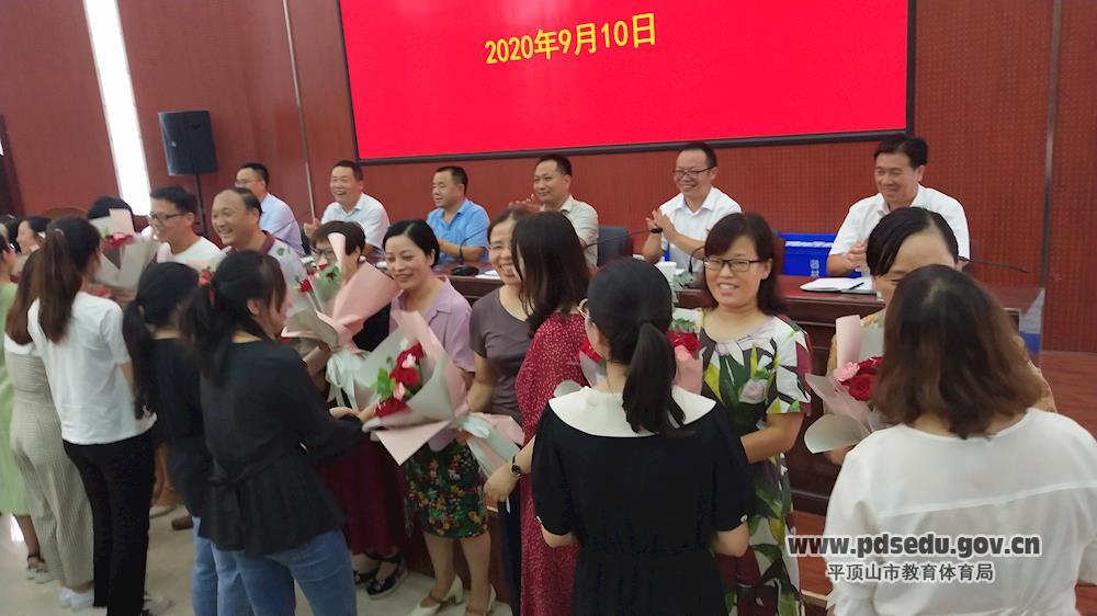 接着在全体教职工的见证下,朝气蓬勃的徒弟们给自己的导师敬献鲜花。师徒或握手致意,或相拥而抱,一束鲜花敬恩师,终生情谊记心间。