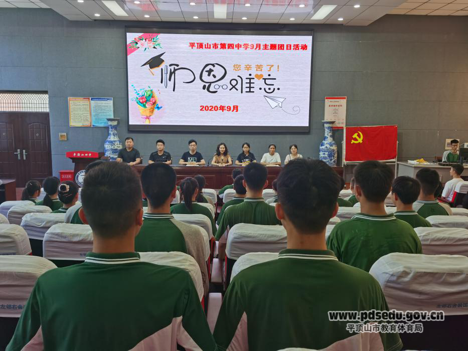 9月5日,市四中团委组织各班团支书和班长在校讲座厅召开“师恩难忘,您辛苦了”主题团日活动,校团委副书记张真涵向大家介绍了教师节的由来和我国尊师重道的悠久历史,同学们纷纷积极发言表达对老师们的敬意,校团委书记伞景尚向同学们宣布了接下来的活动安排并对任务分配作出具体要求。
