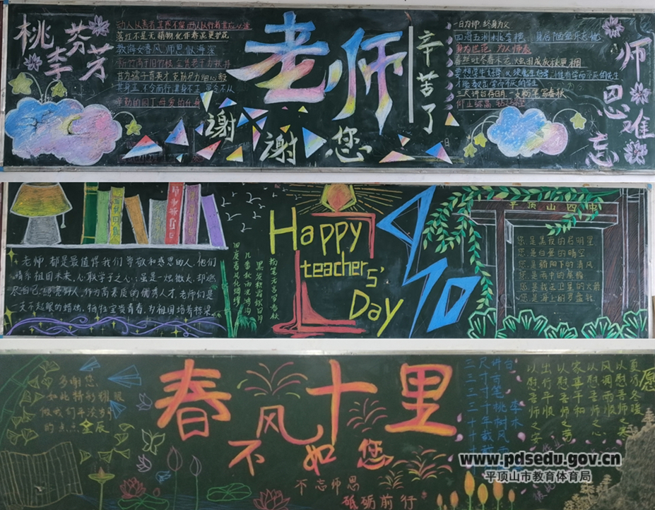 孩子们精心设计了黑板报和手抄报,献给他们最爱的园丁。