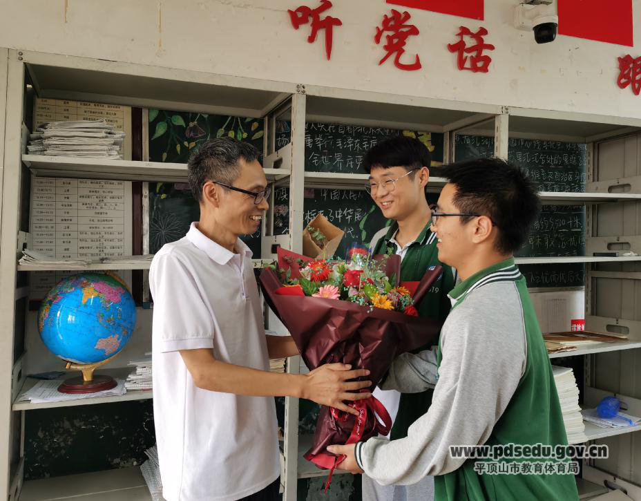 一束鲜花道崇敬,课下,孩子们送上小小礼物,表达祝福。