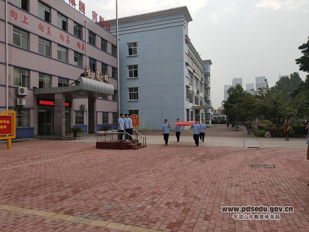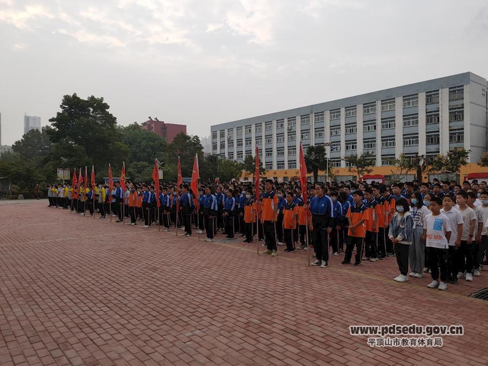 伴着铿锵的出旗曲,9月14日早,市四十中的升旗仪式正在进行。在雄壮的国歌声中,五星红旗徐徐升起,迎着朝霞飘扬在蔚蓝的天空中。