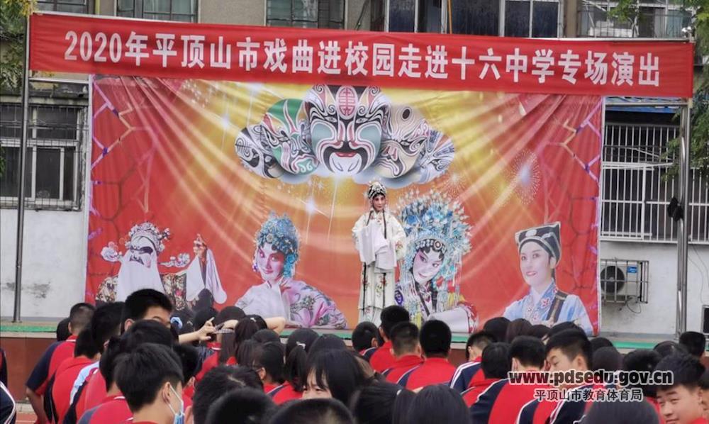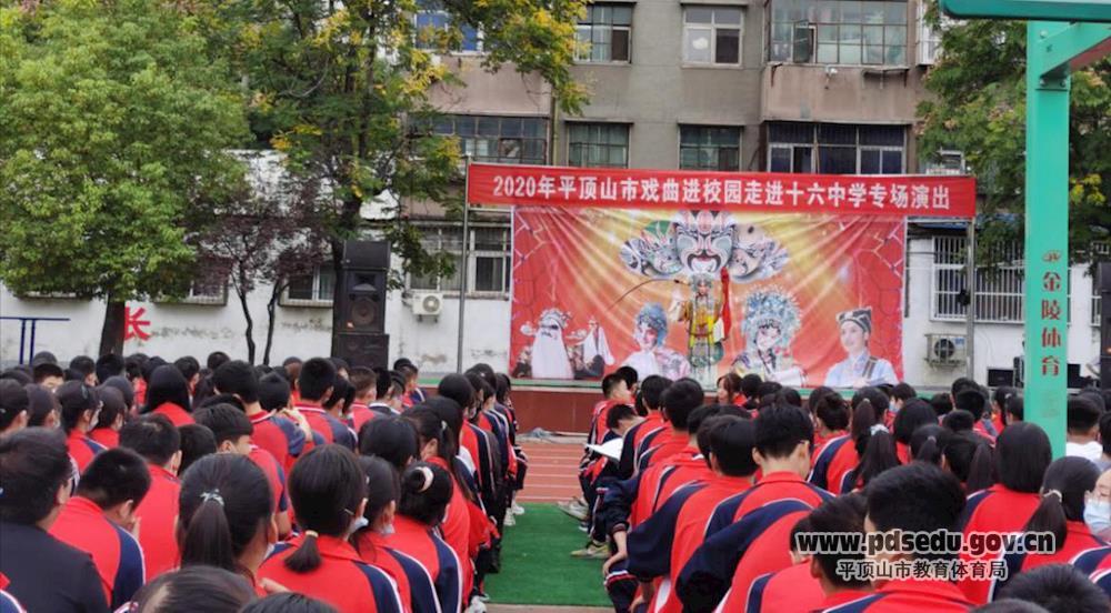 9月16日下午,平顶山市豫剧团一行工作人员,来该校进行“戏曲进校园”戏曲展演。