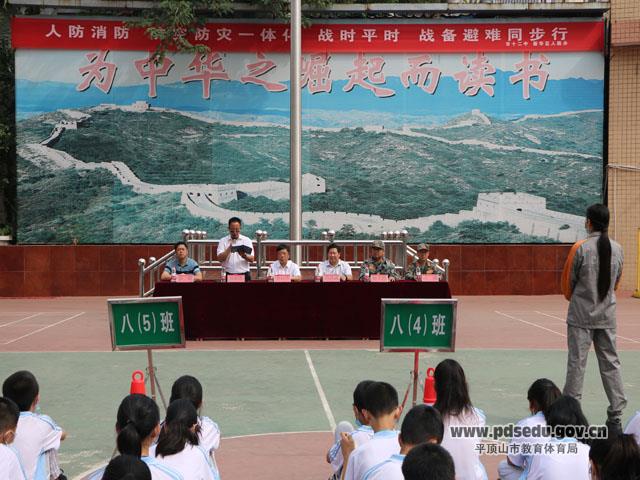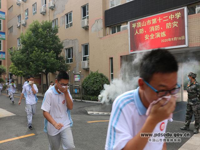 2020年9月16日,市十二中在新华区人防办的配合下,举行了人防、消防逃生培训及演练。平顶山市人民防空办公室副主任李运华、新华区人防办主任杨立杉、新华区住建局局长吕洪武参加。