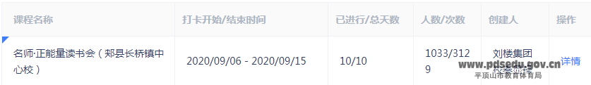 和第一季相比,本季读书活动的第一周,即呈现出各校积极探索、打造本校“特色主题文化”的良好趋势。第一时间行动起来的郏县长桥镇中心校,绑定读书会后台管理员后,由总校孙彩娜校长亲自负责,指定专人设计、制作专题课程:“红色经典中的少年英雄”——纪念中国人民抗日战争暨世界反法西斯战争胜利75周年,通过本校老师精选、领读小英雄雨来、抗日小英雄王璞、英雄小八路、小萝卜头、小报童等经典人物、英勇事迹,大大提高本校学生的爱国主义热情,学生每天积极打卡、参与度高,总参与学习人数突破万人,打卡次数三千余人次,学生跟读留言也纷纷表示:“不忘记小萝卜头,不忘记千千万万的革命先烈,没有中国共产党,就没有今天的幸福生活”。该主题读书活动覆盖郏县长桥镇各村小学,在开学之际,通过线上读书会的阅读形式,为不同学校的几千名学生普及了数节生动的“爱国主义教育课”。