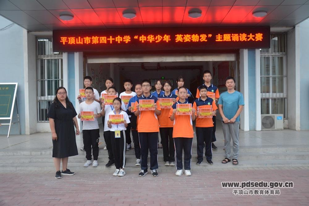 中华经典是我国传统文化的瑰宝,滋养着我们一代又一代的中国人。为了让学生积累中华美文的精华,丰富孩子的文化素质,加强青少年思想道德文化建设,市四十中组织学生积极排练,举办了以“中华少年 英姿勃发”为主题的诵读大赛。