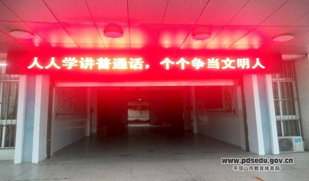 1.在校园内,电子屏显示推普周活动标语——“人人学讲普通话,个个争当文明人”,将推普与校园日常行为规范联系起来,引起广大师生的重视。