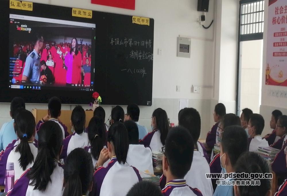 依据《平顶山市教体局关于收看学校消防安全公开课网络直播的通知》要求,为做好疫情防控常态化条件下中小学消防安全宣传教育工作,市四十四中于9月23日上午组织召开了专题会议,研究部署相关工作,决定各班利用班级多媒体,学校的报告厅组织全体师生集体观看消防安全公开课。