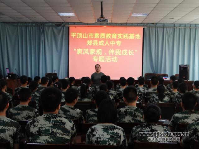 为进一步践行社会主义核心价值观,弘扬传统文化,传承良好家训家风,传递社会正能量。近日,平顶山市素质教育基地通过多种形式开展了“弘扬传统文化传承优秀家风”系列活动,本次活动共分为三个部分:一是利用国旗下讲话的机会举行启动仪式,动员每一位师生积极参与到本次活动中;二是进行校外宣讲活动,组织志愿服务队到村头、集市发放宣传页并对群众讲解“传承家风家训及移风易俗”内容;三是在校内围绕爱国守法,学习进取,尊老爱幼,移风易俗,勤俭节约等主题多次组织举办知识讲座,并利用连务会时间,让同学们畅谈对家风的认识,对家中长辈言传身教的感悟。
