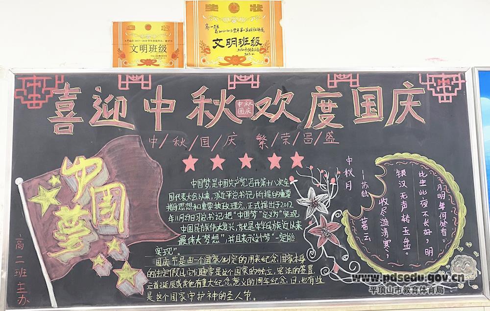 活动二,为了进一步深入宣传,形成浓厚的校园节日氛围,该校团委组织各班出一期以喜迎国庆、中秋为主题的黑板报,系列活动地开展能更加大力颂扬中华民族的传统文化,陶冶学生的爱国情操,增强学生对传统文化的认识和伟大的认同。
