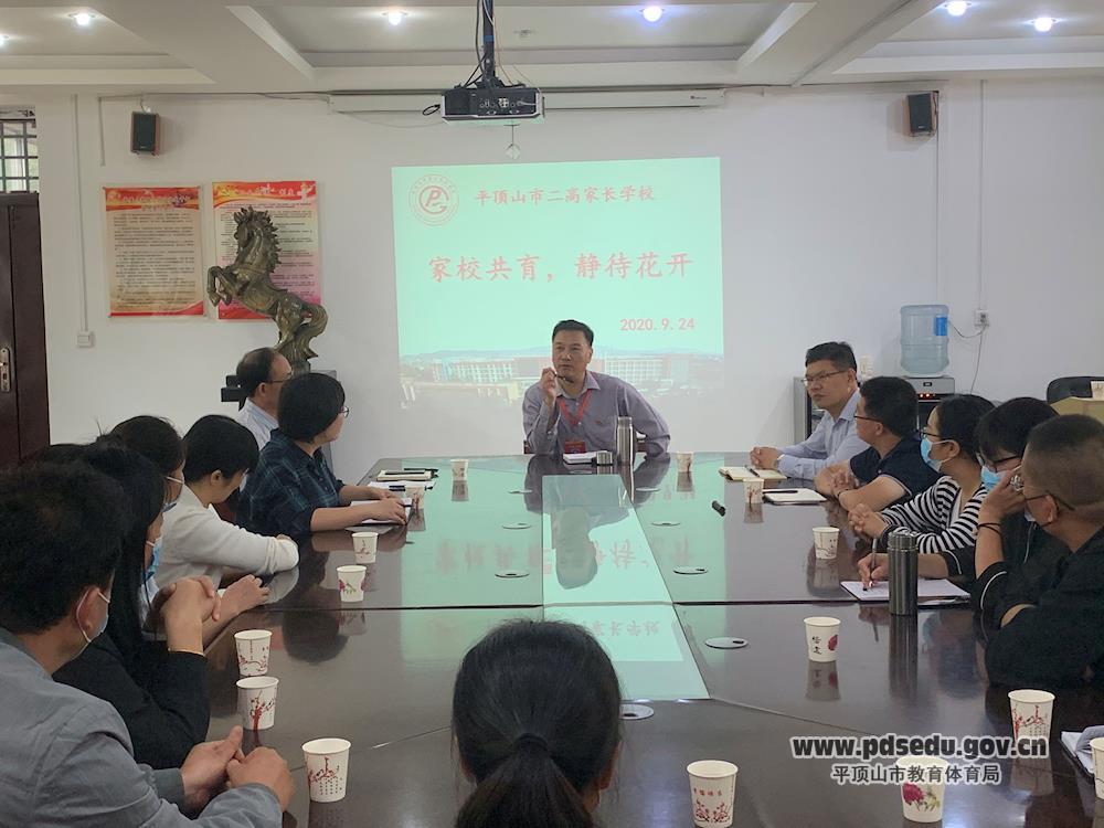 最后,张建岭亲切地与家长代表交流,指出:市二高将追求全面内涵发展,坚持以教学为中心,以精细化管理为突破口,不断强化质量意识,全面提高办学水平,建设鹰城一流、中原知名,与国际办学接轨、助力每一位学生全面发展、特色鲜明的优质高中,希望家长们一如既往,为学校发展献计献策,家校合力,携手前行。