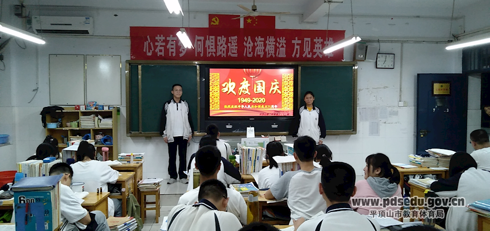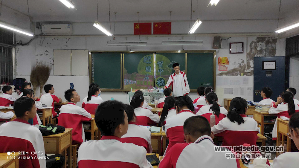9月24日,平顶山市二中利用班务活动时间,组织全校班级召开了别开生面的以“庆祝国庆71周年、欢度中秋佳节”为主题的班会。