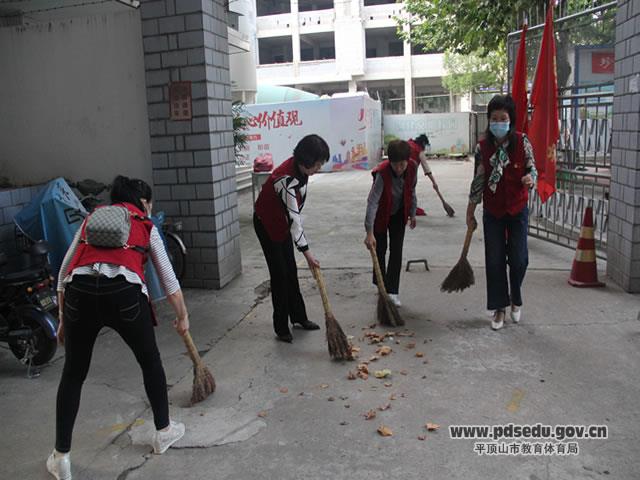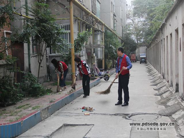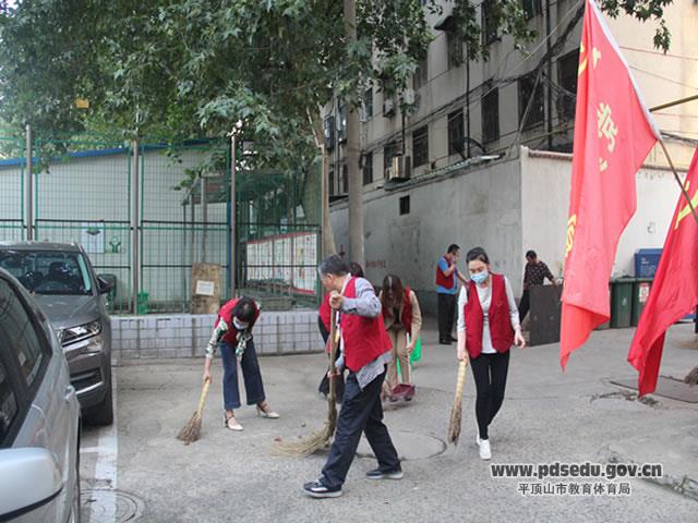 活动中,在党小组长的带领下,党员教师带着扫把、抹布等劳动工具,积极行动,对居民小区进行全面清扫,确保居民小区庭院、楼间空地无卫生死角、无积存垃圾、无杂草枯枝,为社区群众营造出良好的生活环境。