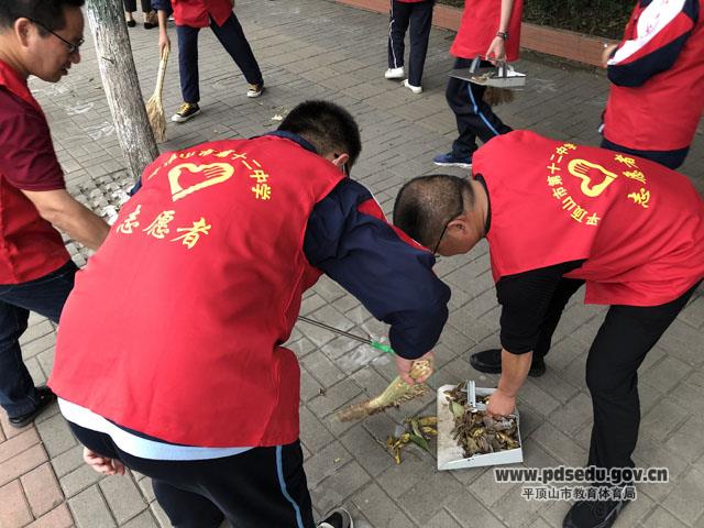 在三环佳苑小区内,志愿者们齐心协力,先对小广场上的落叶等进行了清扫;接着又对草坪上的杂草彻底清理,经过师生志愿者的共同努力,小区环境更加整洁赏心悦目,周边居民纷纷拍手称赞。