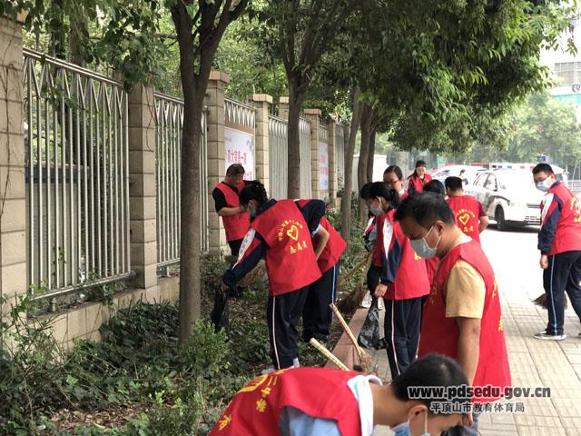 劳动结束后,志愿者在小区和路边劳动过的地方合影留念,孙新志倡导老师们以这次义务劳动为切入点,引导学生从我做起,从身边小事做起,小手拉大手,积极营造“支持创文、参与创文”的良好氛围,为平顶山市创建国家文明城市助力!
