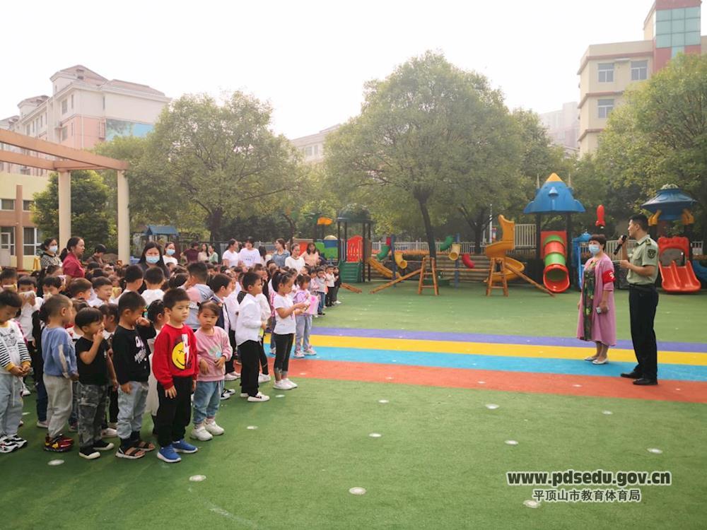 为进一步加强全体教师的消防安全意识和自防自救能力,全面推进校园消防安全宣传工作,9月27日上午,平东幼儿园特邀平顶山市防火中心教官胡金峰对全体教职工开展消防安全知识培训及消防疏散逃生演练活动。