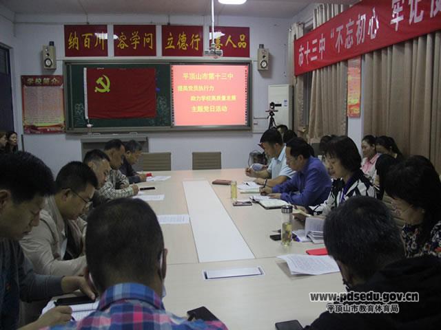 9月29日下午,市十三中在学校小会议室举行“提高执行力 助力学校高质量发展”主题党日活动,全体党员参加了活动,活动由李国权副校长主持。