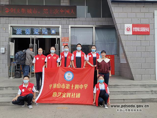 10月1日,市十四中心艺实践社团的16名小志愿者们,在高晶晶老师的带领下,来到平顶山市长途汽车站开展志愿服务活动。