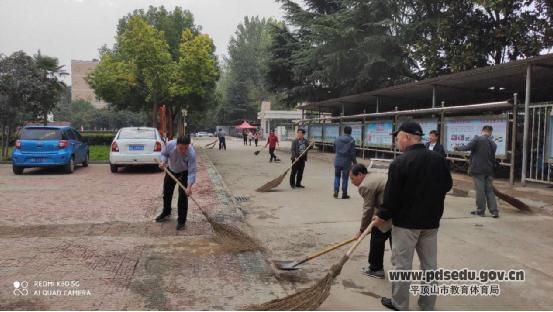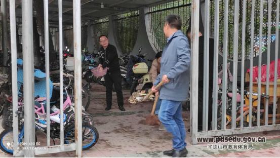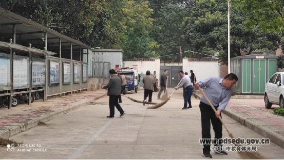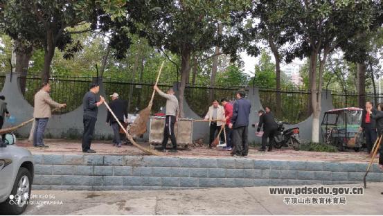 全体中层干部一呼百应,说干就干。他们不怕脏,不怕累,有的拿着扫把,有的掂着脸盆,有的手执撮箕,有的拎着铁锹,打扫路面、车棚,清理杂草,落叶。
