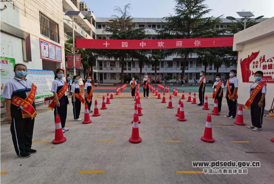 9月16日起,十四中即组织开展了“文明护学岗”志愿服务活动。学校对志愿者老师排班及定点定时值守、穿戴标志等作了统一安排,并在安全和值岗职责方面作了强调。在学生上下学的时候,志愿者们在校门外疏导车辆,维持进、出校秩序。代表着班级形象礼仪的值周班同学身披绶带,每天都早早地站在校门口,精神抖擞地迎接着每位老师和同学。一声声问好,一次次鞠躬,无不展现出十四中少年的礼貌和朝气!