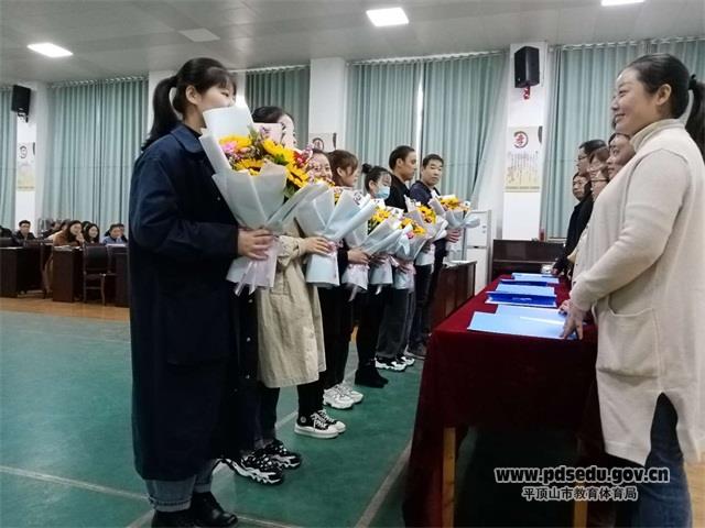 “青蓝工程”的培养对象为入职一至五年的一线教师。师傅由学校指派中青年优秀教师、骨干教师担任,通过师徒结对的方法,加强沟通交流,快速高效的提高青年教师的教育教学水平。会议上通过青年教师向骨干优秀教师献花,双方签订《师带徒培养协议》等项目,加深师徒二人的联系,自今日起,“青蓝工程”正式启动。