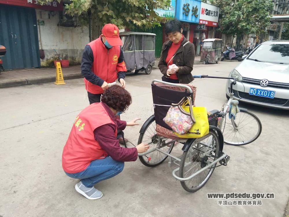 在校大门前,校志愿者开展交通引导、文明劝导等活动。劝导居民遵守交通规则,不乱停乱放,不随地吐痰,积极向市民宣传“创文”知识和环保常识。