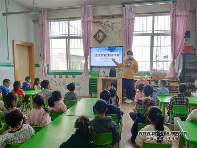在活动中,教师根据孩子年龄特点开展诚信主题教育活动。小班老师引导孩子们看视频、学习诚信拍手儿歌,中班老师分享诚信故事《狼来了》、《曾子杀猪》,大班老师让幼儿通过情景剧表演、谈话“我们怎样做一个诚信的孩子”等方式,让幼儿懂得什么是诚信,如何讲诚信,并引导幼儿在日常生活中做一个诚实守信的孩子。
