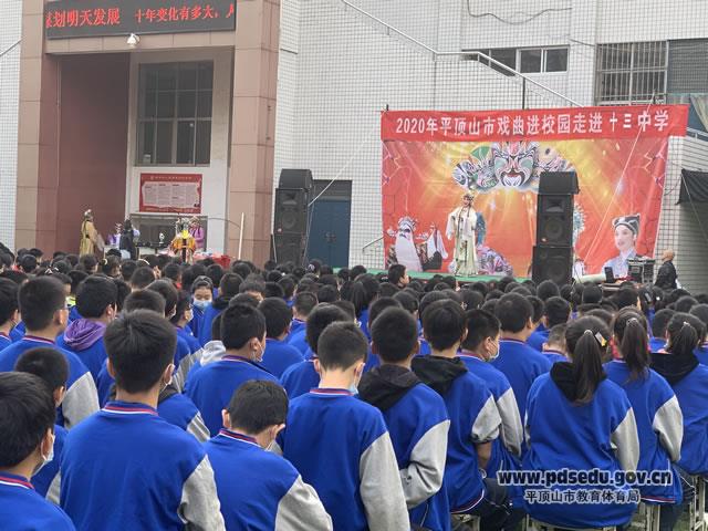 为传承戏曲文化精粹,培育戏曲文化素养,推进戏曲文化传承,10月16日下午,平顶山市戏曲进校园走进市十三中,文体艺术精神深入校园。