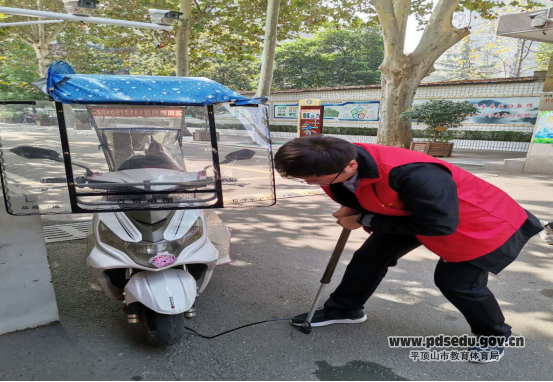 教师志愿者为过路行人打气