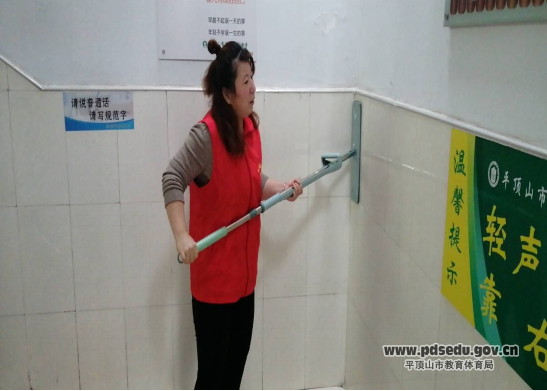 校领导亲自擦拭教学楼墙裙
