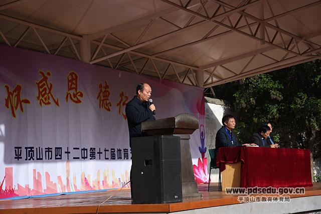 在所有方阵都到达指定位置后,校长杨海兵致开幕词,丁继东老师代表全体裁判员老师发言,九年级六班的杨子锐同学代表所有参赛运动员发言。要求全体师生秉着“公平、公正”的准则,不畏艰难,团结奋进,以“友谊第一,比赛第二”为原则,赛出水平,赛出风格。