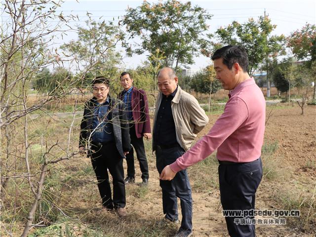 大何庄村第一书记张昊亮、冢张村驻村工作队队长吕明陪同黄新军观看了村容村貌,了解了村里企业门板厂的生产情况,果苗的长势和今年村里的收成。