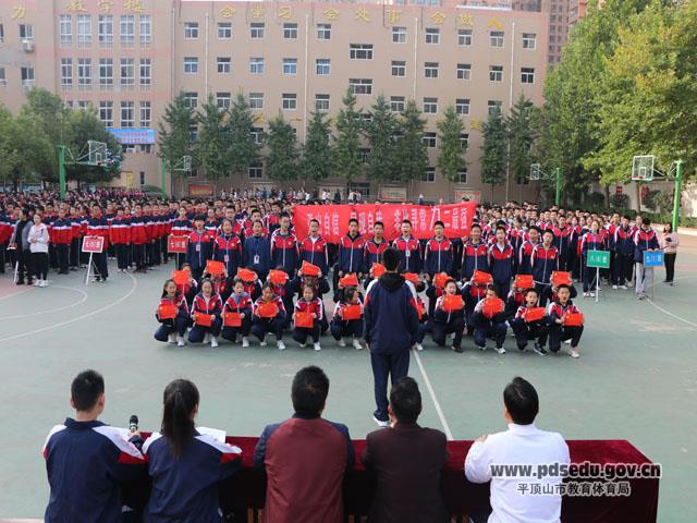 10月22日上午,校长孙新志带领校领导班子成员及全体师生参加了运动会开幕式。伴随着欢快有力的《运动员进行曲》,教师方队步和全校18个班级方阵,排着整齐的队伍,迈着有力的步伐,面上带着灿烂的笑容步入会场。孙新志致热情洋溢的开幕辞,八(6)班冯彦森同学代表全体运动员宣誓,李露露老师代表全体裁判员宣誓,铮铮誓言亮明这是一次公平公正、尊重竞争的盛会。