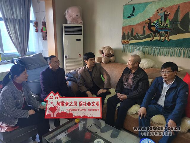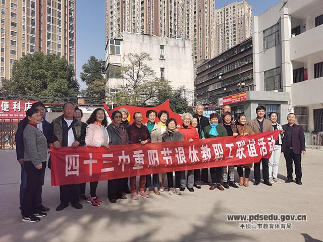 爱满重阳节,情暖老人心,为进一步弘扬中华民族养老孝老敬老的传统美德,营造尊老敬老、助老为老的氛围。在中国传统节日“重阳节”来临之际,市四十三中通过开展慰问退休教职工、教师联谊等丰富多彩的节日活动,送上全体教职工对前辈的节日问候。