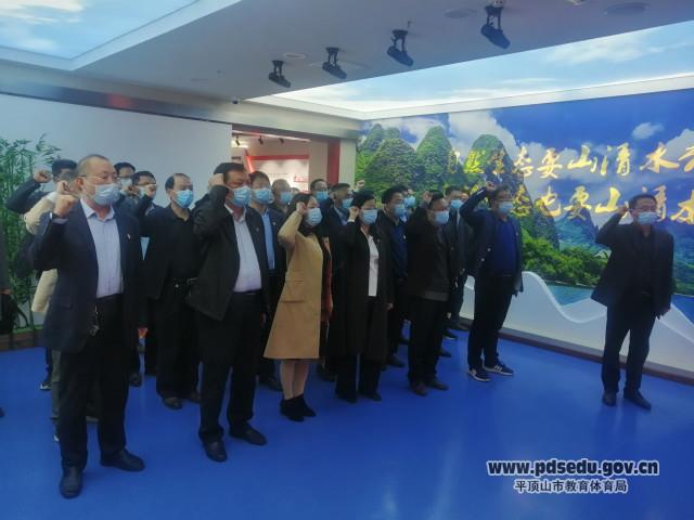 市实验高中副校长刘海洋带领全体党员干部面向党旗庄严宣誓。