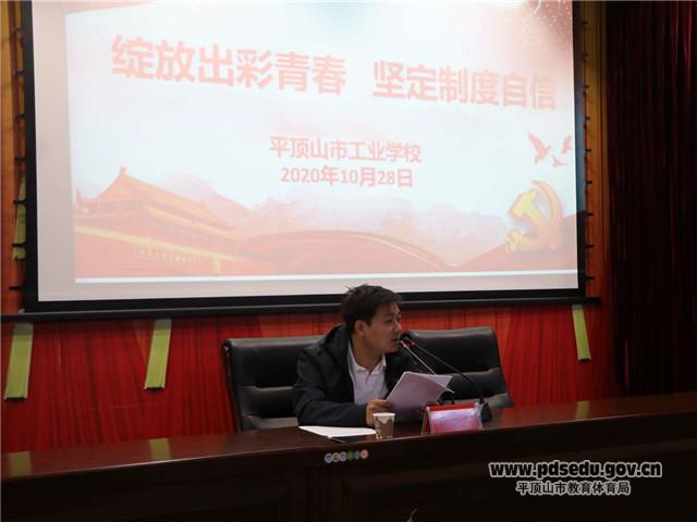 为深入学习宣传贯彻习近平新时代中国特色社会主义思想、习近平总书记关于疫情防控工作的系列重要讲话和指示批示精神,激励青年学生坚定制度自信,贡献青春力量,按照共青团平顶山市委统一安排部署,市工业学校团委组织开展“绽放出彩青春 坚定制度自信"主题宣讲活动。
