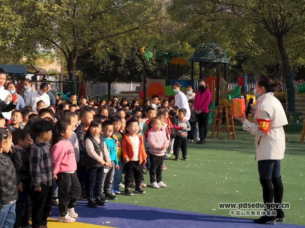 为了进一步增强幼儿园师生的消防安全意识,提高应急防护与逃生自救能力。11月6日,市平东幼儿园开展了“火速行动,防患未然”为主题的消防安全疏散演练活动。
