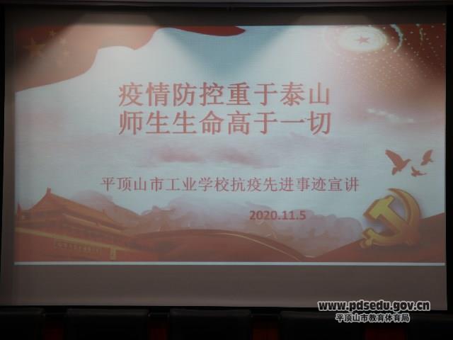 灾难面前显风骨,疫情袭来有担当。新冠肺炎疫情肆虐期间,市工业学校多措并举,联防联控。领导班子躬先表率,第一时间吹响集结曲。办公室、组宣科、学生科、教务科、总务科、膳食科等行政科部室团结一心,克服困难,全面保障学生的人身安全。广大教师"停课不停教","线上战疫情",用爱心、责任心在云端守护学生成长。返校复学后,全体中层以上干部、班主任、任课教师和学生一起封校管理,每天晚上八点小会议室里灯光准时亮起,研究讨论当天的疫情防控情况及出现的新问题,集思广益,解决问题。总务科王占杰和梁向阳两位老师,负责38个教室、卫生间、机房、公寓楼、办公楼等公共区域一天两次的消毒通风工作。学校校医王红和张智琴两个人轮流值班,保障了学校安全稳定和学生健康。冯亚锦老师顾不得年迈需要照料的父母,用实际行动践行了一个共产党员的初心。熊新娜老师负责厨工的早、午、晚检和餐厅的消毒工作,她将自己的父亲接到家中照顾两个年幼的儿子,自己却来到学校,为师生有一个安全的就餐环境而认真工作着。马学珍、张亚、王采栾等文学爱好者们纷纷拿起笔来,创作诗歌,张俊杰、郑杰、徐向东配音的配音,制作的制作,为抗击疫情加油鼓劲、凝聚力量。今年3月,平顶山血站告急,牛率仁得知消息默默地去献血,支援平顶山防疫工作。徐韶华和程豪积极报名参加社区防控工作,冒着寒风在社区防控点一呆就是一天。家在乡下的李腾龙老师面对没电脑没宽带,没教学资料,学生没有新教材的困难,买流量,找教材,克服困难,一桌一凳一手机按时完成授课任务。邢世超老师妻子因病住院,他就将电脑带入病房,在陪护时期,圆满完成了教学工作。疫情期间,老师们纷纷化身网络主播,为了保证教学质量和教学效果,把家人当学生,模拟正规的直播课,彰显了教师的奉献精神和大爱情怀,谱写了一页页动人篇章。他们的感人事迹赢得了热烈掌声。