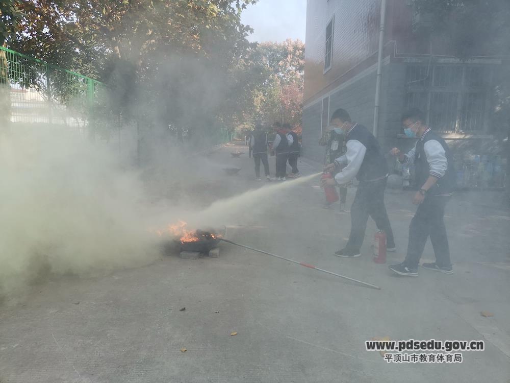 之后,进行了灭火演练。首先,由校保卫科科长王晓东向全体师生讲解了灭火器的使用方法。然后分别由各班学生代表、教师代表、学生公寓管理员、膳食科管理人员进行了灭火演练。
