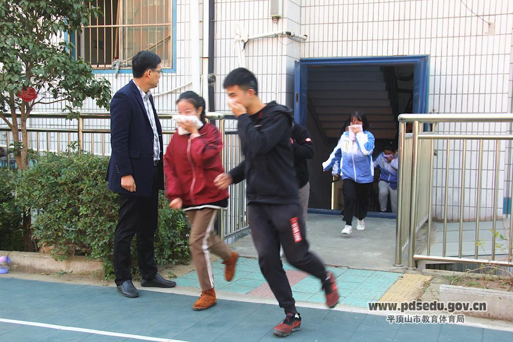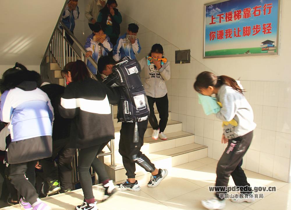 上午9:30,一阵急促的警报声拉开了“师生应急疏散演练”活动的帷幕。听到警报声,各位老师到达指定岗位维护秩序,带领学生手捂着口鼻,弯着腰,俯身有序地沿着学校指定楼梯口快速前进,有序地撤离到学校操场的安全地带,全体师生仅用了2分的时间撤离。