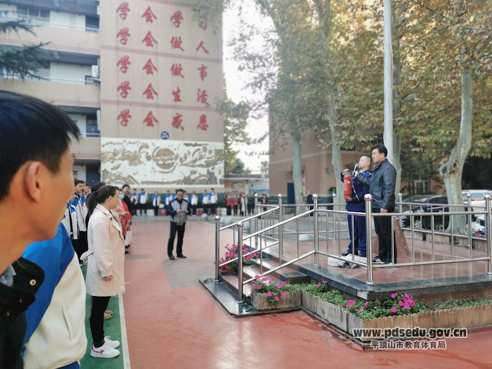 集合完毕后,卫东区消防站教官朱锦朝为大家做了《消防牢记心中、安全相伴一生》的消防知识培训,介绍了消防器材的使用方法和日常生活中的消防知识等内容。